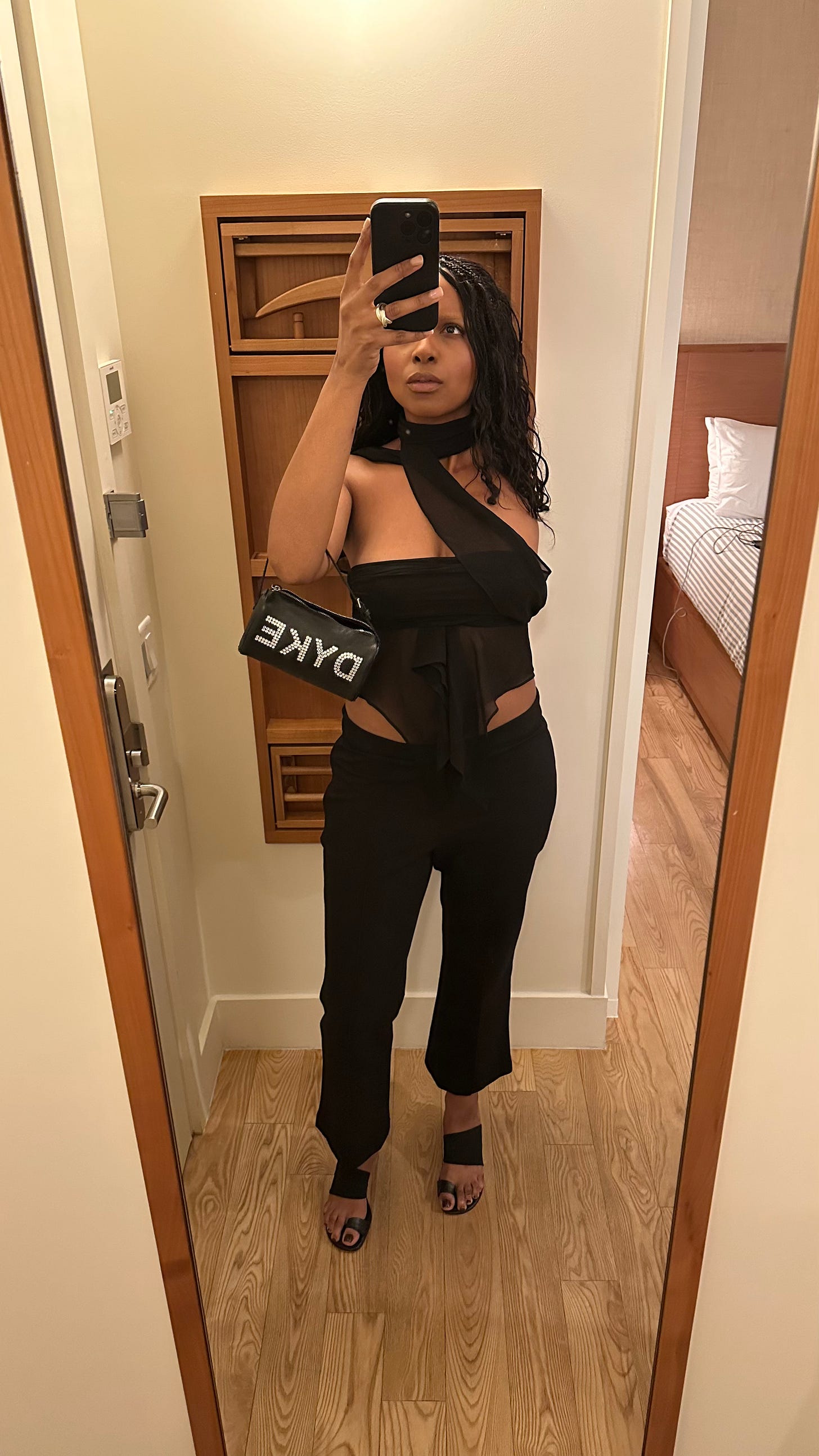 Enter: the Vince Crop Flare Pants. They have a nearly identical silhouette, a flattering (but not extreme) low rise, and a front seam that makes them perfect for my wrinkle-release-and-go lifestyle. As you can see, they also make the perfect “going-out” pant.